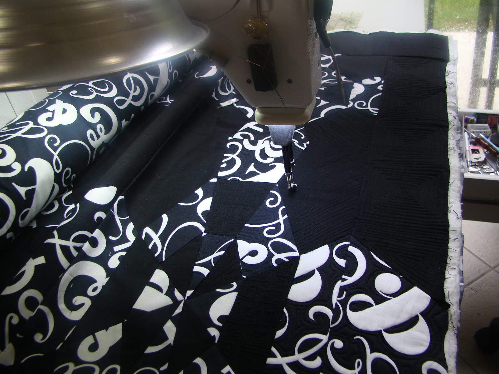 Since April 14 of this year, according to my studio journal, I have been piecing quilts using black as the neutral or back ground color. Since that date I have completed 6 quilts. I am currently quilting on the seventh one, which I am not as enthused about. So far. I think this lack of enthusiasm is due mainly to there being no color. It is just black and white and then too there is the quilting pattern I am using. Black thread on black fabric and the grey rainy days we have had lately.